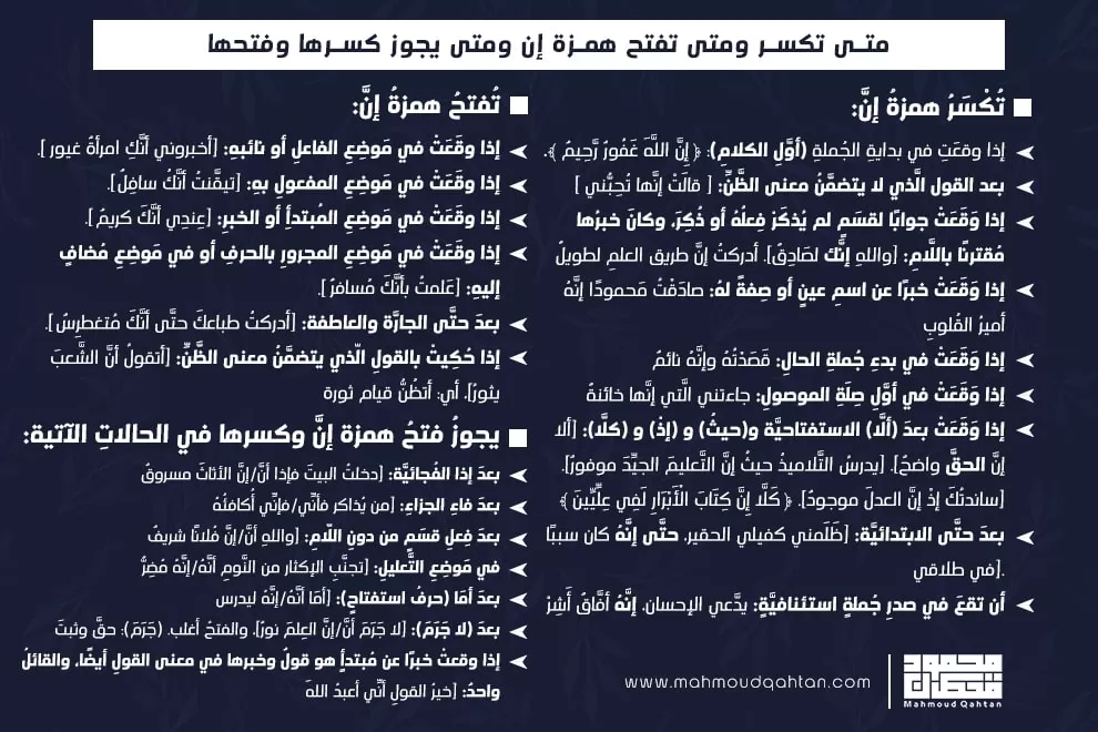 # متى تكسر ومتى تفتح همزة إن ومتى يجوز كسرها وفتحها By محمود قحطان،
