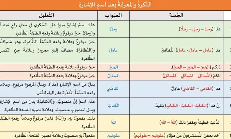 النَّكرةُ والمعرفةُ بعدَ اسمِ الإشارةِ |