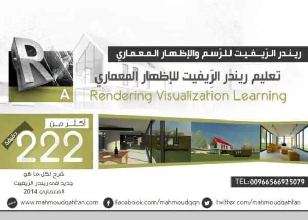 أكثر من (222) دقيقة في نظرة عميقة على الميزات الّتي جعلت ريندر الرّيفيت من أفضل الخيارات المُمكنة في الإظهار المعماري. سنتعلّم في ريندر الريفيت حول الإضاءة الطّبيعيّة والإصطناعيّة وفهم مجموعات الإضاءات، كيفيّة إعداد كاميرات الرّؤية، العمل مع مسار الشّمس، كيفيّة مُعالجة الصّورة، ونتعلّم أدوات إعداد الرّسوم المُتحرّكة. سنستعرض طرائق النّمذجة، وإضافة طبقات الجدران، وطريقة إضافة الخامات، وكيفيّة الحصول على مشهد نهائي بجودةٍ مُميّزة وإعدادات مُلائمة. والعديد من مميّزات ريندر الريفيت.