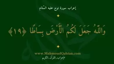 إعراب سورة نوح الآية (19): {والله جعل لكم الأرض بساطا} إعراب سورة نوح الآية (18): {ثم يعيدكم فيها ويخرجكم إخراجا}…